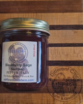 Ingredients: Organic Apple Cider Vinegar, Organic Blackberries, Organic Sugar, Organic Sweet Peppers, Organic Apple Cider Vinegar, Organic Peppers (Serrano, Sweet), Organic Sage, & Pamonas Pectin.