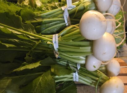 We thoroughly enjoy these farm fresh certified organic Japanese turnips. They are sma;;. mild, sweet, and often referred to as a salad turnip. However they are far more versitle than just in salads. They have a buttery texture and a slightly spicy flavor, making them great for salads, or quick pickling. If you roast, sautee, or braise them you will bring out their sweetness. Be sure to also enjoy the greens.